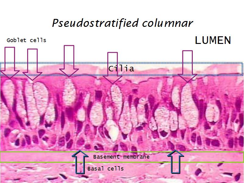 - Pseudostratified ciliated columnar epithelium: Slide 73