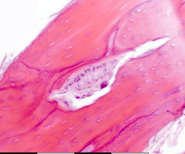 Osteoklast / Osteoclast Osteoblaste / Osteoblasts Osteoied / Osteoid Osteosiete / Osteocytes Nuwe been / New bone Groeilyne / Growth reversal lines Osteosiete in lakunae / Osteocytes in lacunae Lakunae / Lacunae