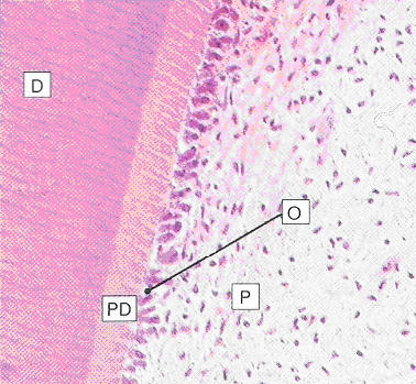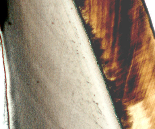 | Medium magnification of a longitudinal ground section of a tooth |