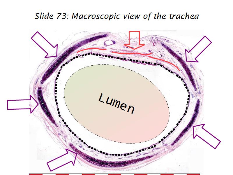 - Pseudostratified ciliated columnar epithelium: Slide 73
