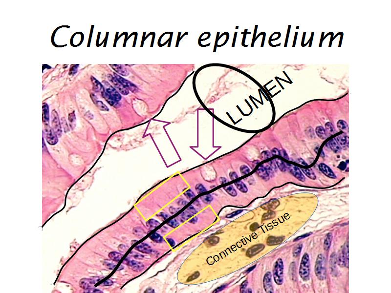 - Simple columnar epithelium: Slide 58